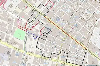 ![]() Lower Central Business District with original (black) increase I (red) and increase II (blue) boundaries | |