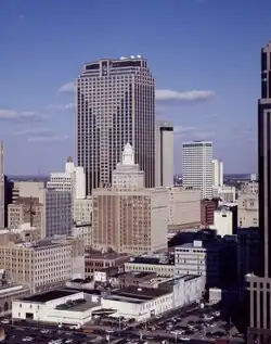 New Orleans' Skyline (1990s): Shown New Orleans Central Business District, with Hibernia Bank Building and Place St Charles skyscrapers centered.
