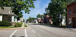 New Palestine was laid out October 1, 1838, by Jonathan Evans.[5] It first consisted of fifteen blocks and thirty six lots.[6] A petition for the incorporation of New Palestine as a town was dated May 22, 1871, and presented to the board of county commissioners at the June session of 1871. At the time of the petition, New Palestine had a population of around 669 people. The vote for incorporation was held on June 24, 1871. Many years after incorporation, the town had difficulty with its name. The post office was known as Sugar Creek, the railroad and express stations as Palestine and the name of the town itself was New Palestine. Through the efforts of E.F. Faut and Congressman Bynum, the name of the post office was changed from Sugar Creek to New Palestine on January 16, 1889, and the name of the railroad station and express office were also changed to New Palestine.