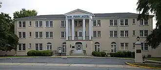 New Perry Hotel was a historic hotel in Perry, Georgia, located at 800 Main Street. It consisted of a three-story, 40 room Neoclassical hotel built in 1925, and a one-story, eight-room Colonial Revival motel, which was built in 1955 and enlarged in 1959 with a pool, cabana, and 9 more rooms. In 1947 a kitchen and banquet hall were built. Between 1955 and 1959 the rear lobby was converted into the motel office and a card room was built. The original full-height portico was altered in 1965. The round Tuscan columns were replaced by square Tuscan columns.[2]