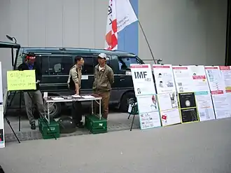 The New Right (Korean: 뉴라이트; RR: nyuraiteu) movement in South Korean politics is a school of political thought which developed as a reaction against the traditional divide between conservatives (the "old right") and progressives. The New Right broke from past conservatives, who supported state intervention in the economy, by promoting economically liberal ideas. Many figures of the New Right have also become notable for criticising Kim Ku and anti-Japanese sentiment in South Korea. The movement was initiated by former pro–North Korean activists and communists.[1] Opponents of the New Right movement described this as anti-leftism, military dictatorship advocates, pseudo right-wing, anti-ethnonationalism, pro-sadaejuui, and "pro-Japanese identity".[2] While engaging in anti-communist activities that resonate with many Koreans, they also make anti-Korean remarks, causing many to feel a sense of aversion and suspicion toward them.