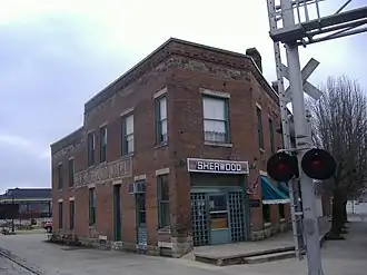 The New Sherwood Hotel replaced the previous Johnson Hotel/Sherwood Hotel, which burned down in 1913; it was placed on the same property, next to where the major road crossed the train track. The fact that the hotel was of masonry and concrete was to ward against future fires. It was also designed in a manner more fitting for larger cities like Louisville and Lexington, Kentucky; not small towns like New Haven. The heyday of the hotel was from when it was built in 1914 to the year 1932, at the height of the Great Depression. The Louisville and Nashville Railroad, which controlled the track by the New Sherwood Hotel, stopped service to the station in 1954. The owners in 1992 were descendants of the original owner; six Johnsons bought control of the hotel from the other co-owner Johnsons. It was restored for the benefit of visitors to the next door Kentucky Railway Museum.[3]