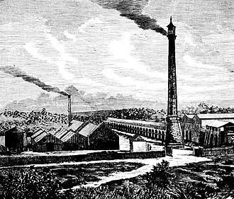 The Sydney merchant Thomas Sutcliffe Mort and the manager of Western Kerosene Oil Company, Scottish-born gas engineer and shale oil expert James Walter Fell (1847–1882), were pivotal in the merger of the two companies and rationalisation of their operations, to form New South Wales Shale and Oil, in 1872.[4][5] Mort was a director of Western Kerosene Company when, in July 1871, he had bought the assets of its unsuccessful rival at an auction.[6][7] The new company was incorporated by an act of the New South Wales Parliament on 10 February 1873,[8] and took over all existing operations at Hartley Vale and Waterloo.[9][3]