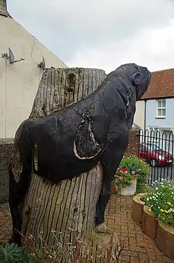 A large wooden carving of a black bull, sculpted by local artist, Paul Sivell, was installed to the right of the town hall in late 2003.[14][15]
