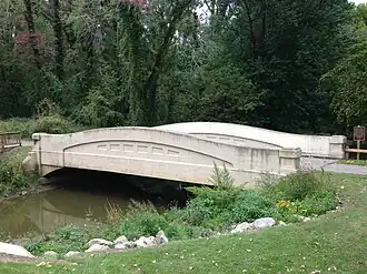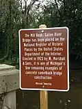 Mill Road-Galien River Bridge is on the National Register of Historic Places, placed there by the United States Department of the Interior. Galien River Bridge is one of the few remaining concrete camelback bridges in Michigan, according to the plaque.