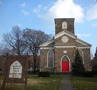 New Utrecht Reformed Church is the fourth oldest Reformed Church in America congregation and is located in Bensonhurst, Brooklyn, New York.[2] The church was established in 1677 by ethnic Dutch residents in the town of New Utrecht, Brooklyn, several years after the English took over New Netherland. It is affiliated with the Reformed Church in America, a Protestant denomination. The cemetery was consecrated in 1654; 1300 dead are interred there. The Liberty Pole, the sixth on the site of the present church, was originally erected in 1783 at the end of the Revolutionary War to harass departing British troops.
