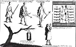 The waterways of Canada are essential for this trade to function because the native peoples' main mode of transportation used canoes, which could carry their furs for trade and allowed for them to navigate the St. Lawrence River. Lahontan notes that the natives are incredibly agile at navigating the waters. He spends a winter hunting with the Algonquin “in order to develop a more perfect knowledge of their language” while the city of Montreal is fortified to be protected against attacks.[5] Lahontan writes that the way the Indians fought was comical, with their “bows and arrows and stark nakedness.” Montreal was the city of merchants, some traveling only once a year there to sell their goods such as wine. The governors spent their winters there as well, hence the need for fortifications. During the winter Lahontan is introduced to the native way of hunting elk, the use of “rackets” (or snow shoes) which he finds to be useful. He observes that hunting is a huge part of native culture for survival, unlike in France where hunting is a sport for the wealthy.