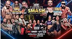 New Year's Smash featured professional wrestling matches that involved different wrestlers from pre-existing scripted feuds and storylines, written by AEW's writers.[3] Storylines were produced on AEW's weekly television programs, Dynamite, Rampage, and Collision.