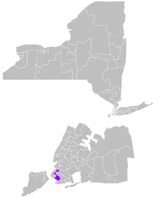 The district overlaps with New York's 7th, 9th, 10th, and 11th congressional districts, and with the 41st, 42nd, 44th, 45th, 47th, 48th, 49th, and 51st districts of the New York State Assembly.[4]