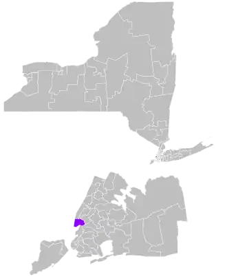 The district overlaps with New York's 7th, 10th, and 12th congressional districts, and with the 65th, 66th, 67th, 73rd, 74th, and 75th districts of the New York State Assembly.[5]