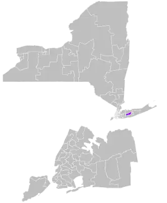 The district overlaps with New York's 1st and 2nd congressional districts, and with the 5th, 6th, 7th, 9th, 11th, and 12th districts of the New York State Assembly.[5]