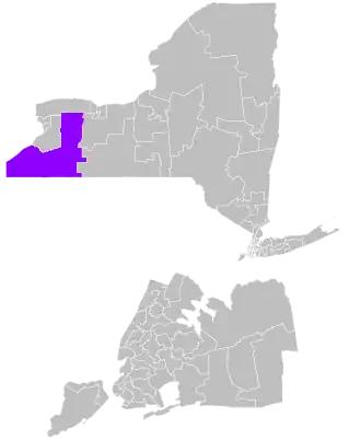 District 57 is located in the far southwestern corner of Upstate New York, including all of Allegany, Cattaraugus, and Chautauqua Counties, as well as parts of Livingston County.[1][4]