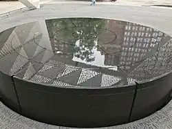 In November 2011, in collaboration with magazine Architectural Record and industry database Architizer, the NYC AIDS board announced an international design competition to design the memorial park. Brooklyn-based Studio a+i, led by Mateo Paiva, Lily Lim and Esteban Erlich, won the contest and became memorial park architects. The winning design was rejected by the owner, Rudin Management.[7] The original winning design was entitled "Infinite Forrest".[8][9] It envisioned a grove of birch trees surrounded by perimeter walls that were reflective on the interior creating an infinity illusion. The exterior walls would be chalkboard slate to allow ephemeral art and messages, an homage to post 9/11 impromptu sidewalk memorials and message boards. The built memorial also features the work of visual artist Jenny Holzer whose idea was to engrave a granite panel with lines from Walt Whitman's "Song of Myself".[3][10]