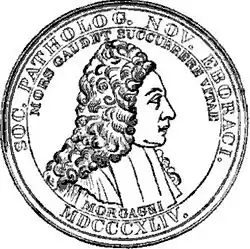 ![]() 1894 seal displaying the society's name in Latin, "Societatis Pathologicae Novi Eboraci," its motto "Mors Gaudet Succubrere Vitae," and a portrait of Giovanni Battista Morgagni | |