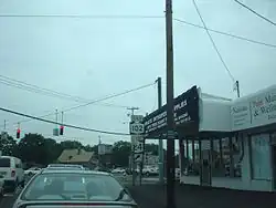 After Peninsula Boulevard, NY 102 continues eastward along Front Street,[5] which becomes state-maintained at a junction with William Street.[6] The route winds eastward through Hempstead for several blocks along the now four-lane road, passing numerous residences and apartment buildings. NY 102 bends northeast, intersecting with Uniondale Avenue in Uniondale. At this junction, the route becomes commercial in nature once again, crossing several blocks of businesses until Locust Avenue. Now two lanes, NY 102 continues northeast through Uniondale, crossing under the six lanes of the Meadowbrook State Parkway (with no interchange present). After the Meadowbrook, the route continues to bend northeast, passing through more residences and large commercial strips. A short distance later, the route intersects with Merrick Avenue, entering the Barnum Woods section of East Meadow.[5] In Barnum Woods, NY 102 becomes a mix of residential and commercial as the two-lane main street. At the junction with Vincent Road, NY 102 leaves Barnum Woods and enters East Meadow.The route remains commercial and residential in nature, proceeding northeast past a long strip mall near East Meadow Avenue. After passing a large complex of stores, NY 102 intersects with NY 24 (Hempstead Turnpike) once again in East Meadow. This T-intersection serves as the eastern terminus of NY 102, whose right-of-way also ends.[5]