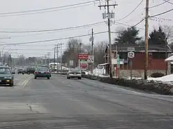 The route has also been realigned in areas to bypass smaller communities along the highway. One such location is in the vicinity of the village of Greene, where NY 12 initially followed Chenango Street through the village.[31] The current bypass around the western edge of the village was built in the late 1970s and completed by 1981.[32][33]