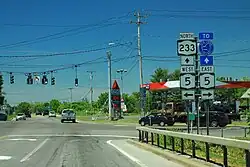 The alignment of NY 233 has remained virtually unchanged since the route was assigned as part of the 1930 renumbering of state highways in New York. It initially ended at a junction with NY 5S (now NY 69) in Rome (at Stanwix).[2] The section of the Utica–Rome Expressway near Stanwix was constructed in the late 1970s,[3][4] at which time NY 233 was extended a short distance along NY 69 to connect to an interchange with the expressway.