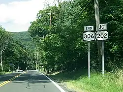 New York State Route 306 (NY 306) is a north–south state highway in western Rockland County, New York, in the United States. NY 306 runs from NY 59 in the hamlet of Monsey to U.S. Route 202 (US 202) in Ladentown, on the western boundary of the village of Pomona. The road is currently 5.33 miles (8.58 km) long; however, it originally extended south to the New Jersey state line and north to Willow Grove Road (former NY 210) when it was assigned as part of the 1930 renumbering of state highways in New York.