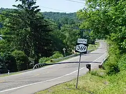 The entirety of modern NY 369 was assigned in the 1930 renumbering. At the time, NY 369 terminated on its southern end at a three-way intersection with NY 7 southwest of Port Crane.[2] When NY 7 was upgraded on the spot to a limited-access highway between Chenango Bridge and Port Crane in the 1970s,[3][4] the intersection was reconfigured into a curve feeding traffic directly to and from the old surface alignment of NY 7 (now NY 7B).