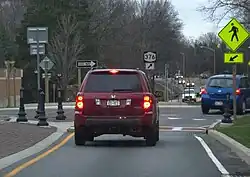 In 2006, the New York State Department of Transportation (NYSDOT) converted NY 376's intersections with the main gate of Vassar College and College Avenue into roundabouts.[11] Both of the roundabouts replaced traffic lights. A traffic signal used to control traffic for a pedestrian crosswalk was also removed as part of their construction. Another roundabout was constructed in 2008 at Fulton and Collegeview Avenues.[12][13] NYSDOT has called the installation of roundabouts a success, stating that it has significantly calmed traffic, decreased congestion and increased traffic flow.[11]
