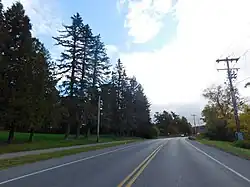 The state-maintained portion of Mitchell Street and Ellis Hollow Road was designated as NY 393 c. 1933. The route began at NY 79 (State Street) in Ithaca and ended at the Dryden town line, where the road continued east as a local highway.[2][3] NY 13 was realigned through Ithaca c. 1936 to bypass the campus of Cornell University to the south along Dryden Road, Ithaca Road, and Mitchell Street. As a result, NY 393 was truncated slightly to begin at the junction of Ithaca Road and Mitchell Street.[8][9] NY 393 remained unchanged until the mid-1960s when it was removed from the state highway system.[4][5] The portion of NY 393's former routing in the city of Ithaca is now city-maintained while the remainder of the highway in the town of Ithaca is now part of CR 110.[10]