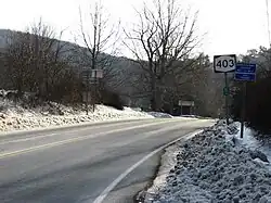 New York State Route 403 (NY 403) is a 2.27-mile-long (3.65 km) state highway located entirely within Putnam County. It connects NY 9D in Philipstown at its northern end to US 9 in the hamlet of Graymoor, where the Appalachian Trail crosses both highways. At that intersection, NY 403 is signed as a route to the Bear Mountain Bridge. Half of its length is uphill going south.