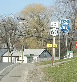 NY 424 was assigned as part of the 1930 renumbering of state highways in New York.[2] It went unchanged until April 1, 1980, when ownership and maintenance of the route was transferred from the state of New York to Chautauqua County as part of a highway maintenance swap between the two levels of government. The other routes given to the county were the portion of NY 380 between NY 424 and U.S. Route 20 (US 20), the entirety of NY 428, and two reference routes in Dunkirk and Fredonia. In return, the state assumed control of NY 394 between NY 5 and US 20, US 62 from NY 394 to NY 60, and Forest Avenue south of Jamestown.[5] The NY 424 designation was officially removed on August 7, 1980,[3] and its former routing is now part of CR 58, which was extended over the length of the state highway.[6][7]