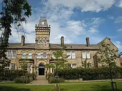 Newall contains Prince Henry's Grammar School, Wharfedale Hospital and adjacent to it, Wharfedale Park, a 21st century housing development featuring conversions of many of the listed buildings of the former hospital including the 1873 workhouse. Newall Hall is the remaining part of an 18th century listed building, now converted into flats.[2] An older building, Newall Old Hall was painted by Turner but was demolished in 1928 for council housing.[3][4] Newall Grange on Weston Road was built in the 1880s.[5] It also contains Wharfemeadows Park, with extensive gardens on land beside the River Wharfe donated to the town in 1924 by the Fawkes family.[4]