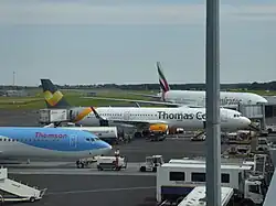 Aircraft belonging to Thomson, Thomas Cook and Emirates at the airport in 2014