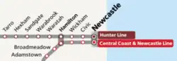 The line closed between Hamilton and Newcastle stations on 25 December 2014,[12][13] with the Hamilton to Wickham section reopened on 15 October 2017 when Newcastle Interchange was opened as the line's new terminus.[14][15][16]