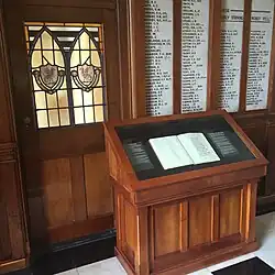 Newington ceased its connection to theological training in 1914, when the Wesleyan Theological Institution moved to the newly founded Leigh College at Strathfield South.[24] In 1921, a stone war memorial, designed by Old Newingtonian William Hardy Wilson, was opened in memory of those old boys who had paid the supreme sacrifice in World War I.[25] A separate preparatory school was opened in 1921, after a bequest by Sir Samuel McCaughey. It became known as Wyvern House in 1938, when a new building was opened by Old Newingtonian Sir Percival Halse Rogers.[26]