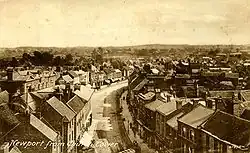 Newport is a market town and civil parish in the borough of Telford and Wrekin in Shropshire, England. It lies 7 miles (11 km) north-east of Telford, 12 miles (19 km) west of Stafford, and is near the Shropshire-Staffordshire border. The 2001 census recorded 10,814 people living in the town's parish, which rose to 11,387 by the 2011 census.[4]