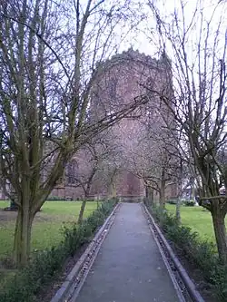 In Saxon times, there were two settlements in the area. The first, Eastun, has been identified as Church Aston, and the second was Plaesc which is now Newport.[8] In AD 963, Plaesc was described as having a High Street, a stone quarry, and a religious community. The name Plaesc means a shallow pool.[9] Few signs of the Saxon settlement exist today, apart from the High Street, the Quarry, which could be either the Quarry on Stafford Road, or the Hole Meadow on Wellington Road. This has not been definitely confirmed.[10]