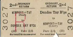 A return ticket for the train service from Dundee to Newport-on-Tay purchased on 3 May 1969.