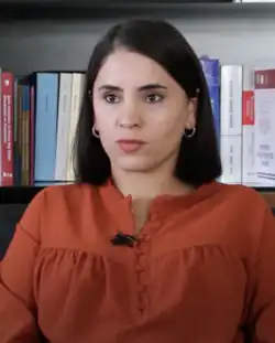 Newroz Uysal Aslan (1992, Kemerli, Turkey) is a lawyer and a politician of the Green Left Party (YSP). In May 2023 she was elected into the Grand National Assembly of Turkey, representing Şırnak for the YSP.