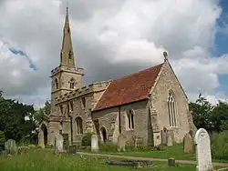 The village's church, named for Saint Peter, is known for its exquisite medieval stained glass. The church has three bells, one of which is unmarked and it is thought to be over 500 years old.