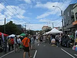 The annual Newtown Festival takes place over one day, culminating in the Newtown Festival Street Fair which is usually held on International Children's Day (usually the first Sunday in March). The event grew from small beginnings in 1995 with the opening of a neighbourhood park. It is now New Zealand's biggest free musical festival and street fair, with 16 outdoor stages, more than 1000 performers and crowds of 80,000 a year.[11] Up until 2017 the festival was run by the Newtown Residents’ Association, and in 2017 a charitable trust, the Newtown Festival Trust, was established to support the organising team. Eleven blocks of Newtown's central Riddiford Street and eleven adjoining side streets are all closed to vehicles for the festival.[12]