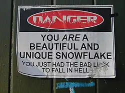 Since the 1980s, the area surrounding the Sydney inner west suburb of Newtown, Australia, including the suburbs of Newtown, Enmore, Erskineville, Camperdown, and St Peters, has been known for its wide range of prominent graffiti and street art on walls.[1] The public visual art in the Newtown area consists of a variety of styles and methods of execution, including large-scale painted murals, hand-painted (or sprayed) political slogans, hand-painted figurative designs, spray painted semi-abstract designs (including large-scale and elaborate semi-pictorial) "tags"), and other stylistic developments such as stencil art and street poster art (also known as "wheatpasting"), "Yarn bombing", and sculptural items cast from plaster and other materials.[2]