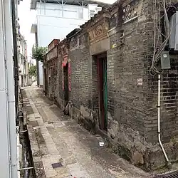 The entrance gate of the village was built in 1862 for defense purposes. A niche on the ground floor houses the Earth God statue and another honoring Kui Xing is located on the cockloft. The former is the guardian of the village whilst the latter is for worship of expecting official position and success in literature.[3] The entrance gate is listed as a Grade II historic building.[6]