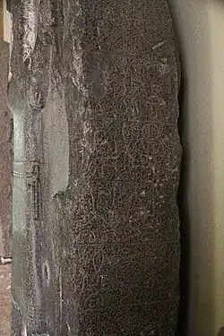 The stele was found on 24 September 1975 near the citadel of Niğde in the Çelebi Hüsamettin Bey Mosque (now Dışarı Camii), where it was reused, carved side down, as a step in front of the entrance to the mosque.[1] It is now in the Niğde Archaeological Museum (inventory no. 22.1.75).