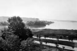 The Niagara Parkway is one of the oldest roads in Ontario. Predating it, an aboriginal trail along the west side of the Niagara River existed before the arrival of Europeans.[9] The first survey along the length of the river was done by Augustus Jones in 1786. The survey set aside a one chain reserve along the bank of the river for military purposes; one chain being equivalent to 20 metres (66 ft).[10] Despite this reserve, early settlers extended their fences to the river. In 1791, the Land Board ordered that the fences be removed to permit the reserve's use as a public road. The Niagara Road quickly became the primary route between Fort Erie and Fort George. Its importance grew with the declaration of war against the Americans in June 1812. During the war, the road became vital for the movement of militia and supplies, and accordingly it was one of the primary frontiers of the war.[9]