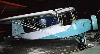 The aircraft has a high strut-mounted parasol wing that can be folded to reduce hangarage space required and to permit towing by road.[2] The two crew seats are arranged side-by-side. Initially the cockpit was open, but some examples later had an enclosure fitted. Production ceased in 1935.