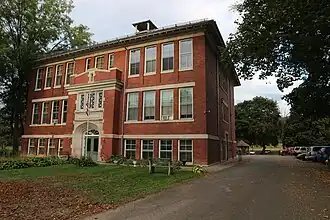 Nichols High School is a historic high school located at Nichols in Tioga County, New York. It is a Tudor Revival style, three-story, rectangular brick structure with limestone trim built in 1911–1912. The hipped roof is topped with a belfry that retains the original school bell. The building was last used as a school in 1958.[2]