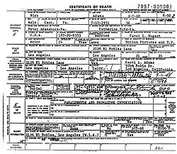 During the autopsy Dr. Thomas Noguchi found enough paraldehyde, sedatives and other drugs in the body "to cause instant unconsciousness." The death certificate lists "paraldehyde and promazine intoxication" as the immediate cause of death, along with the notation "accident; suicide; undetermined." During the 1960s, drug interaction warnings were not so prominent as they later would be, and the American Medical Association has subsequently warned these two types of drugs should never be taken together.
