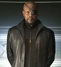 ![]() Samuel L. Jackson as Nick Fury as he appeared during the filming of The Avengers (2012). | |