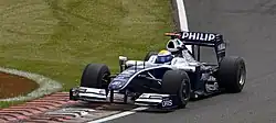 Rosberg was again partnered with Nakajima for the 2009 season.[73] He lost five percent of his body weight to compensate for the introduction of the kinetic energy recovery systems increasing the car's minimum weight limit to 605 kg (1,334 lb).[74] Rosberg had an improved season: the Williams FW31 was one of three cars to have an early speed advantage because it featured a double diffuser system and Rosberg led the first 15 laps of the Malaysian Grand Prix,[75] however, the team could not sustain the car's pace of development. He finished 16 of 17 rounds; the exception was the Brazilian Grand Prix.[39] Rosberg was consistent in finishing in the points-paying positions, achieving a season-best result of fourth at the German Grand Prix and the following Hungarian Grand Prix. He scored 34.5 points for seventh in the WDC.[28]