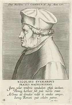Klaas Evertszoon, also called Nicolaus Everardi (1461/62–1532) was a Dutch jurist and the father of Johannes Secundus, an acclaimed poet. He is not to be confused with Nicolaus Everardi (1495–1570) and his son Nicolaus Everardi (1537–86), both professors in Ingolstadt.