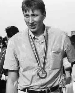 Nicolaie Taga (born 12 April 1967) is a retired Romanian rower. He competed in three events at the 1992 and 1996 Olympics and won a gold and a bronze medal in 1992. At the world championships he won a gold medal in 1993 followed by two silvers and two bronzes in 1996–2000.[3]
