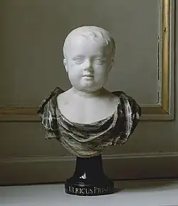 He worked often as a portrait artist. He portrayed living and deceased members of the royal family as stand-alone works or as part of the tomb monuments on which he worked. His style is realistic. The same realism is also present in his purely vegetative decorations. The queen dowager appreciated his portrait busts of her deceased grandsons Gustav and Ulrik. These were later incorporated in two vanitas still life paintings by the Dutch artist Cornelis van der Meulen which hung in their grandmother's prayer room.[4]