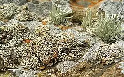 Niebla homalea is a species of fruticose lichen that grows on rocks in foggy areas along the Pacific Coast of North America, from Mendocino County, California south to Bahía de San Quintín on the main peninsula of Baja California, with an isolated occurrence further south on vertical rock faces above Punta Camachos, and other occurrences in the Channel Islands and on Guadalupe Island.[3] The epithet homalea, given by Acharius, suggests it was in regard to the branches appearing flattened.